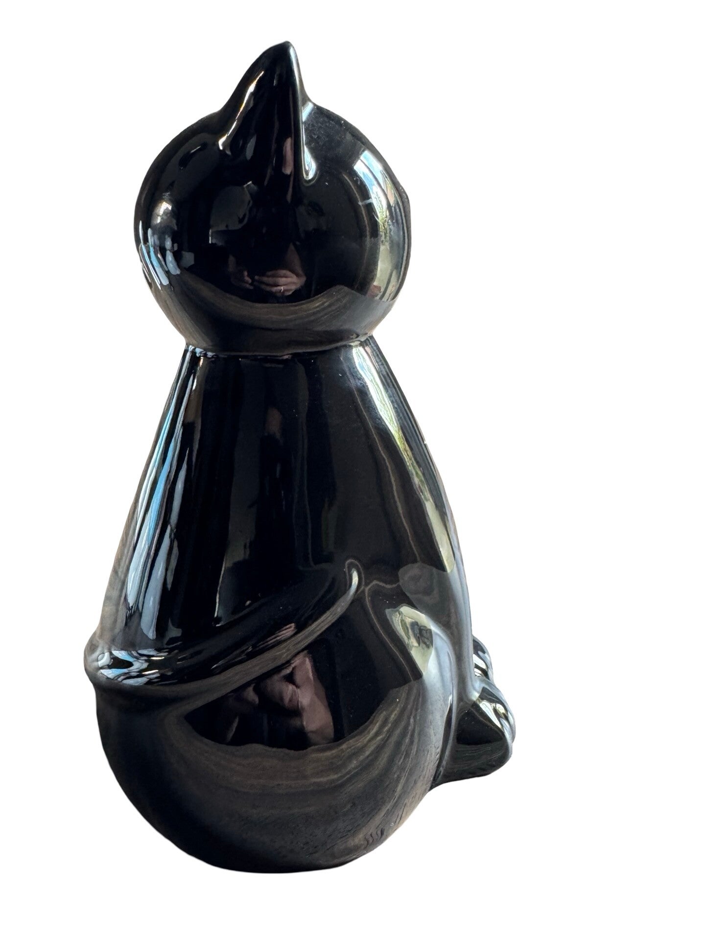 Zwarte Kat urn - Keramiek Zwart Glanzend - 850 ml - Handgemaakt